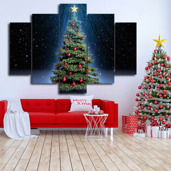 Este lienzo modular de 5 paneles transforma cualquier pared en una declaración de espíritu navideño. Con colores vibrantes y un efecto 3D que captura la luz, se convierte en la obra de arte principal de tu sala. Es la forma más impactante y elegante de dar la bienvenida a las fiestas.